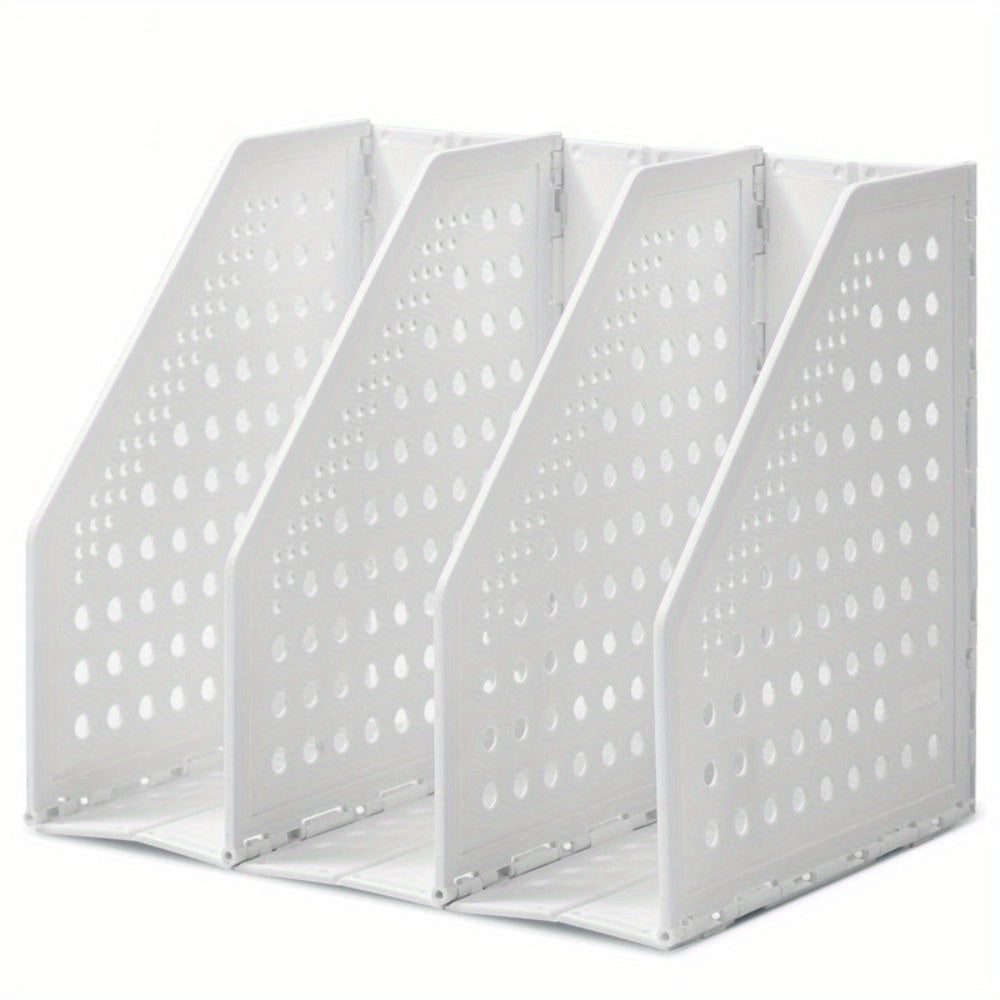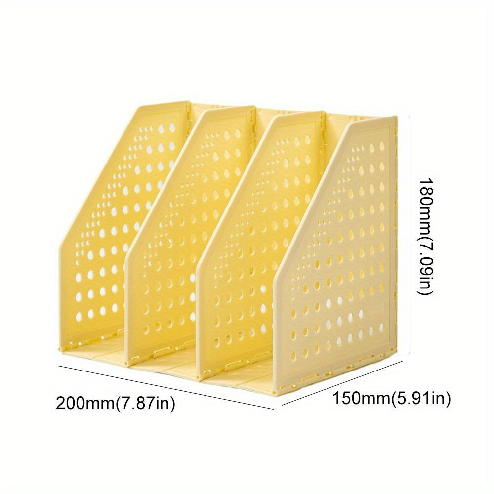 Adjustable Folding Bookstand 3-Tier Adjustable Folding Bookstand - Retractable PP Desktop Organizer with Multiple Compartments for Office, Home, or School Use (White, Yellow)